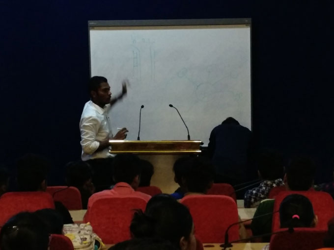 Speaker interacting with the students and solving their doubts and queries