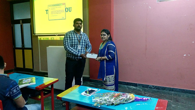 Prof. Aditi Indap (H.O.D. of Electronics) felicitating the speaker