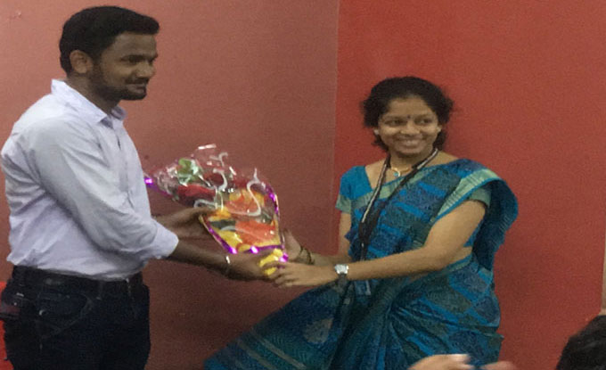 Mr. Chaitanya Khaire felicitating Ms. Khushbu Jakhotia