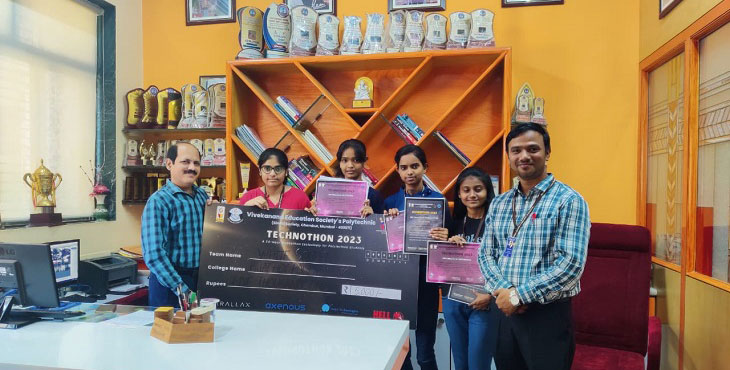 Mr. Prathamesh Relekar, Mr. Rajat Naidu, Ms. Mansi Mahabdi and Ms. Diksha Patil of Computer Engineering department has been Grand Finalist at “Technothon 2024 – A 24-hour Inter-College Hackathon exclusively for the Polytechnic Students” organized by V. E. S. Polytechnic, Chembur on 17th and 18th February, 2024.
