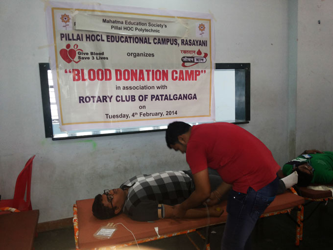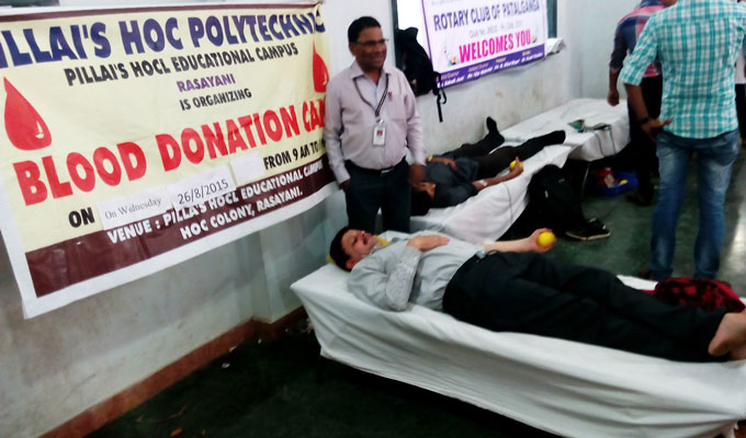 Blood Donation Camp was held at Pillai HOC Educational Campus at Rasayani at 7th February, 2011. The camp has strong support by the enthusiastic Engineering, Management, Polytechnic, Architecture, B.Sc. I.T., B.Com., B.M.S. students, who donated in large numbers.
